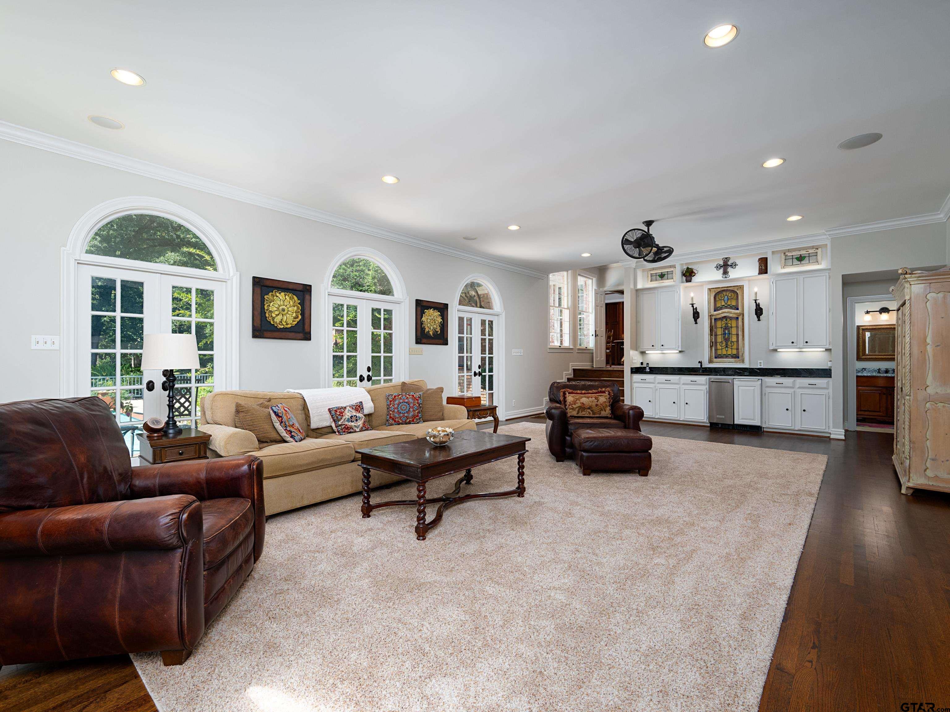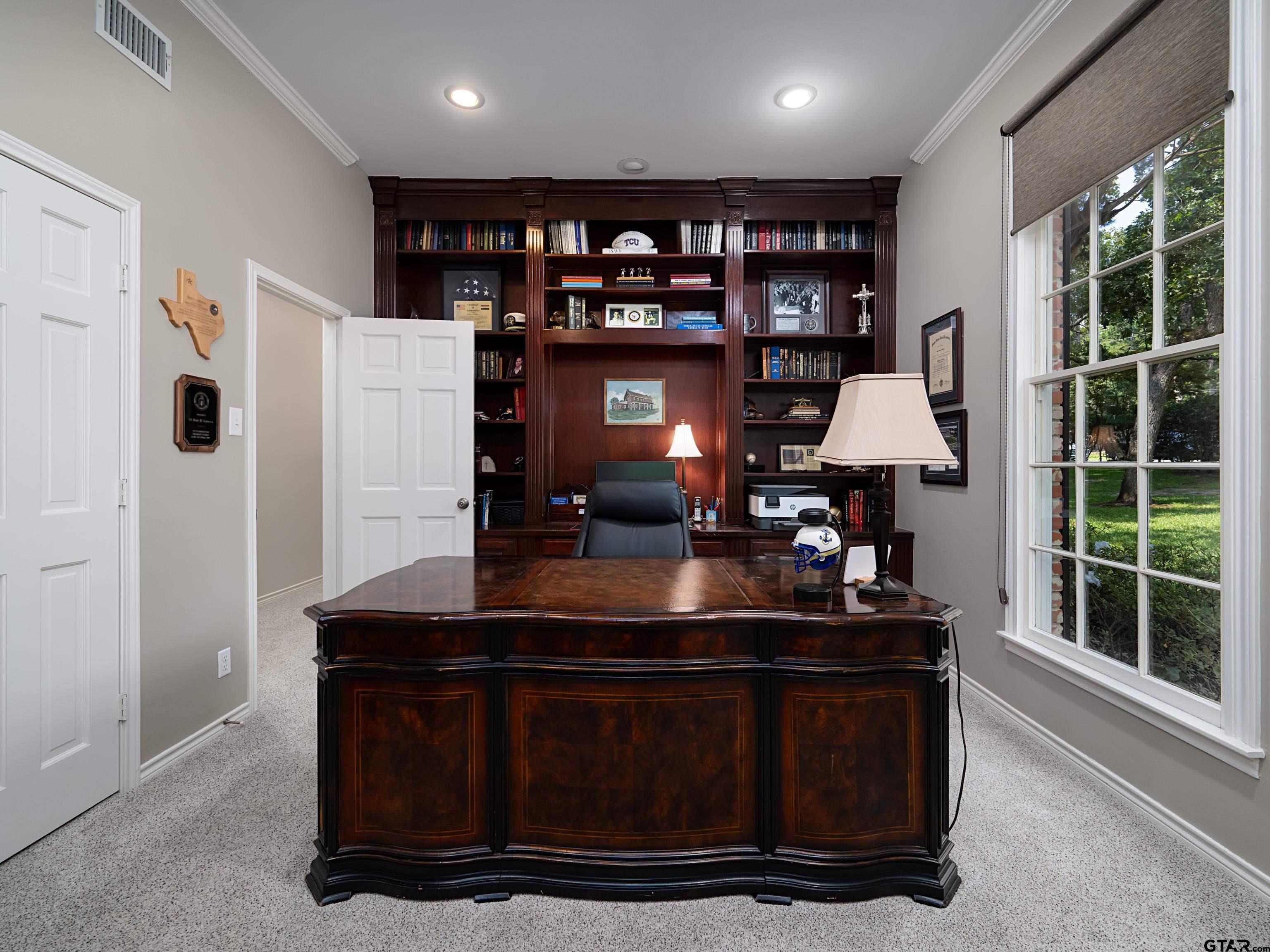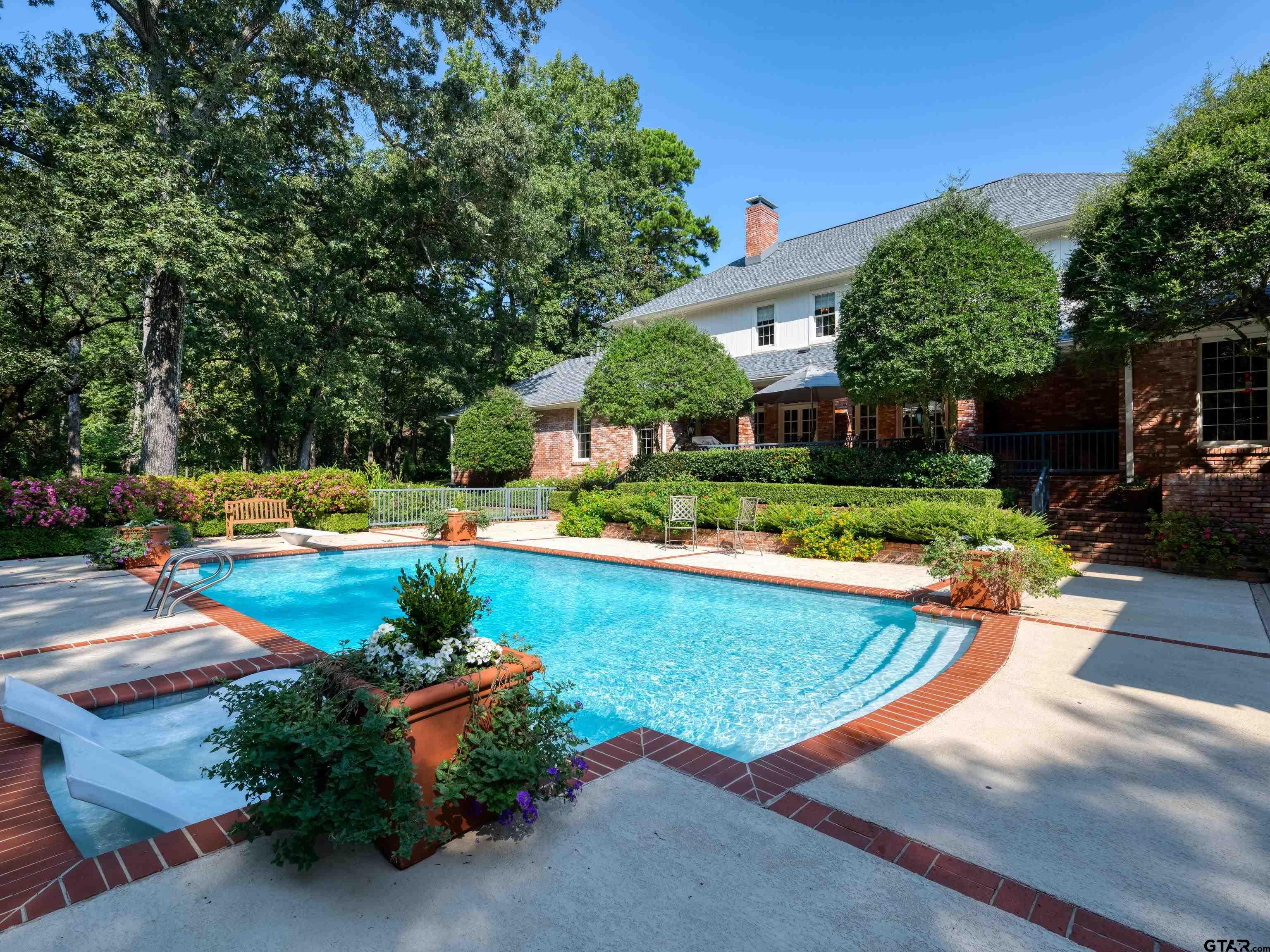 | This stunning five bedroom, four full, plus 3 half bath Georgian-style estate offers over three acres of private, wooded oasis which combines convenience with tranquility perfectly located on Wilder Way in South Tyler, The home itself boasts over 6,300 square feet. It features three distinct living areas, two dining areas, a dedicated office, and a comfortable guest suite, plus additional flexible space. The formal living room is highlighted by beautiful wood flooring, built-in shelving, a lovely fireplace, and a wall of double French doors that showcase an amazing view. The elegant dining room is spacious and perfect for gatherings. The kitchen and adjoining hearth room are truly a dream, featuring brick floors, an abundance of solid cherry cabinets, a large center island, granite countertops, double ovens, a 6-burner gas cooktop, a panel-ready refrigerator, a warming drawer, and a custom wood and copper hood vent. The cozy hearth room includes wood beams, a corner fireplace, a built-in hutch, a kitchen desk, two pantries, and a convenient second staircase. The enormous family room features two walls of double French doors, a fabulous wet bar perfect for entertaining, and another beautiful fireplace. The primary suite is a private retreat with ample closet and cabinet space, separate his-and-hers dressing areas, a luxurious soaking tub, a huge shower, and dedicated space for exercise equipment. The office is conveniently located. Upstairs, you'll find three additional bedrooms, two baths, a flexible space, & an additional living/play room. The exterior of the property is equally impressive, w/ a circle driveway & oversized 3-car garage providing ample parking. A heated and cooled area off of the garage what is ideal for an art studio or catering kitchen with a glass overhead door. The three-acre grounds feature a large swimming pool & a huge brick patio for enjoying the peaceful tranquility. With too many features to list this opportunity does not come often. | |