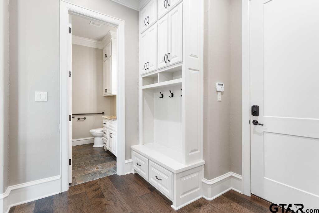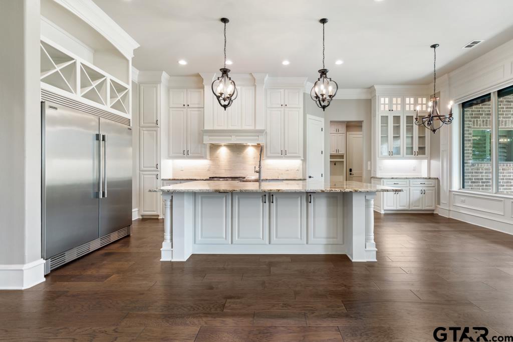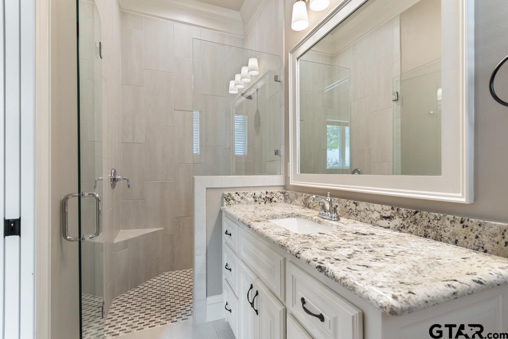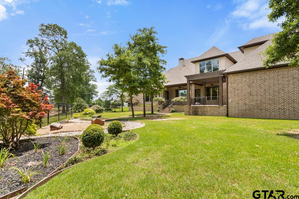 | Welcome to 7532 Northlake Dr., a peaceful retreat tucked within Tyler’s premier community, The Crossing. This custom 5-bedroom, 5.5-bath home blends timeless style with modern comfort, all set on a serene waterfront lot. Inside, a tall foyer leads into a spacious great room with a cozy stone fireplace, beautiful built-in shelves, electric remote-controlled blinds, and views of the lush backyard. The gourmet kitchen features stunning granite countertops, custom soft close cabinetry, and premium appliances including a gas cooktop with double oven, oversized refrigerator, and a separate built-in ice maker. A butler’s pantry connects effortlessly to the formal dining space, making it ideal for both hosting and everyday living. The private primary suite offers a true retreat, complete with a spa-inspired bath featuring a soaking tub, a gorgeous circular walk-in shower,walk-in closet, and built-ins throughout. For added convenience, the suite also includes a separate washer and dryer hookup in addition to access to the main laundry room. Downstairs you will find a spacious private office with gorgeous wood-beamed ceiling and three additional guest bedrooms which provide ample space for family or visitors. Upstairs, you’ll find several flexible living areas, including a secondary living room, a media or game room, and a fourth guest bedroom. The floor plan on this home is ideal for hosting guests as each bedroom has its own private bathroom. Step outside to a large covered patio with outdoor kitchen overlooking manicured landscaping and the peaceful lake, perfect for relaxing or entertaining as the sun sets. Additional features include a three-car garage, a detached shop or fourth garage, a Generac home generator, and a central vacuum system. From the spacious interior floor plan to the beautifully landscaped exterior, every detail is thoughtfully designed. Discover refined waterfront living in Northlake Estates. Schedule your private tour today. | |
