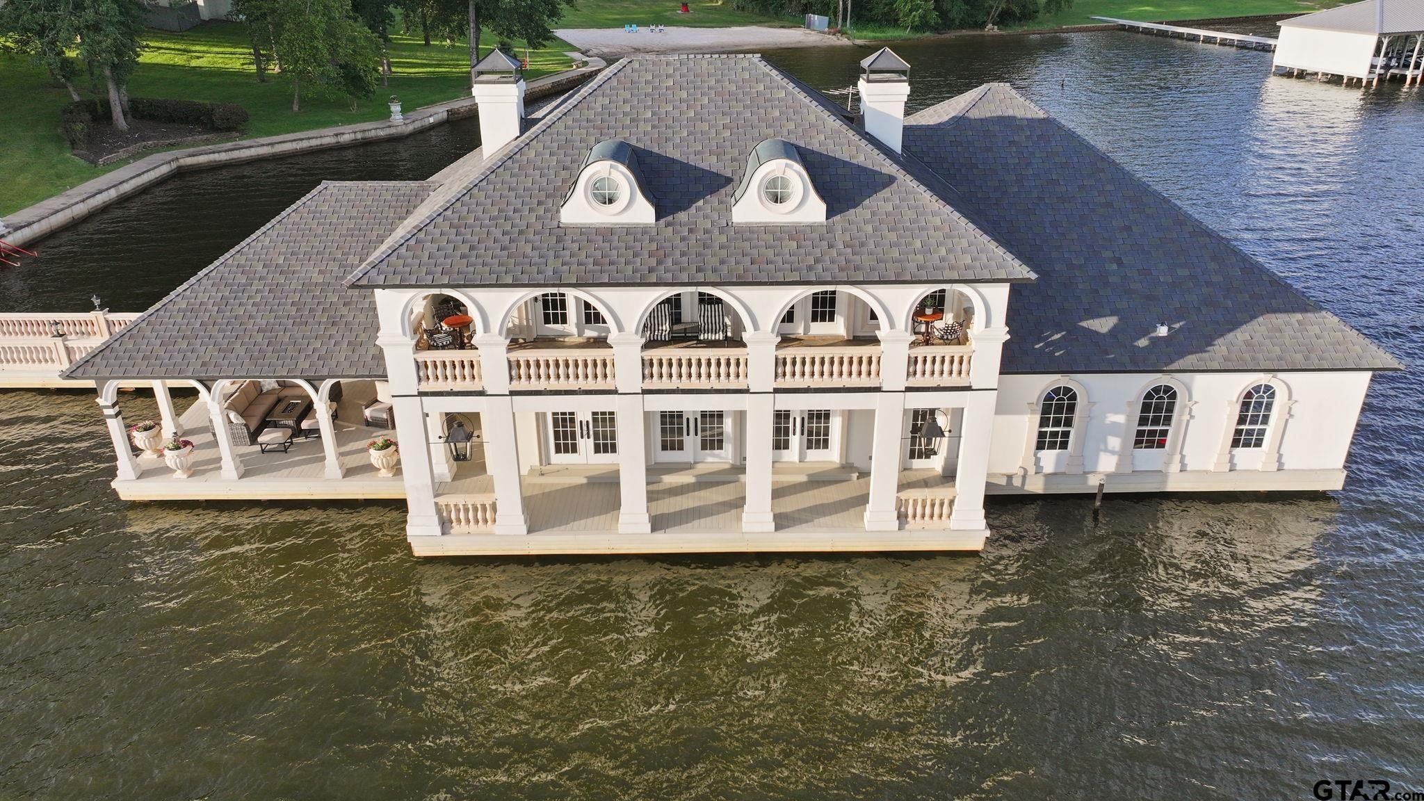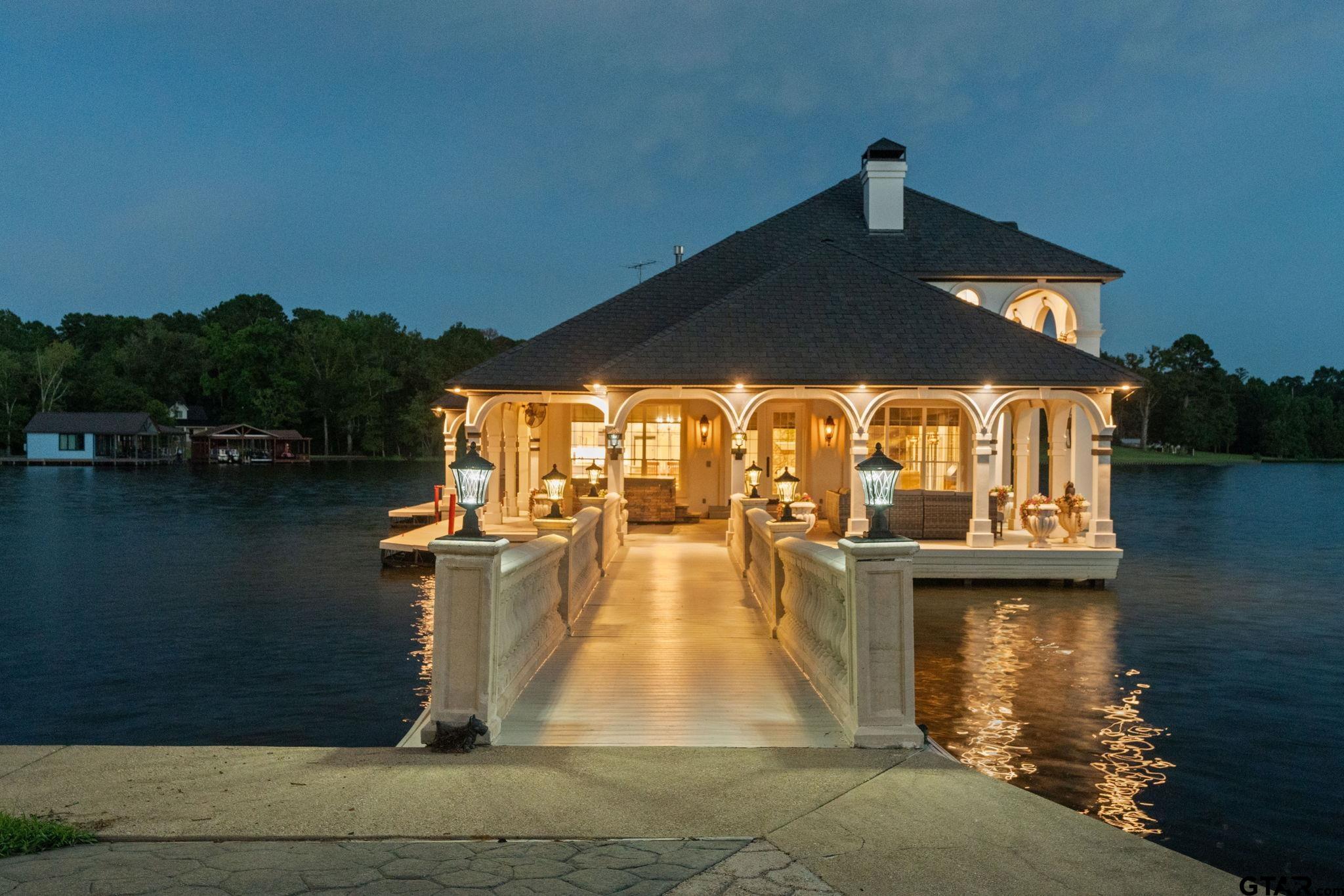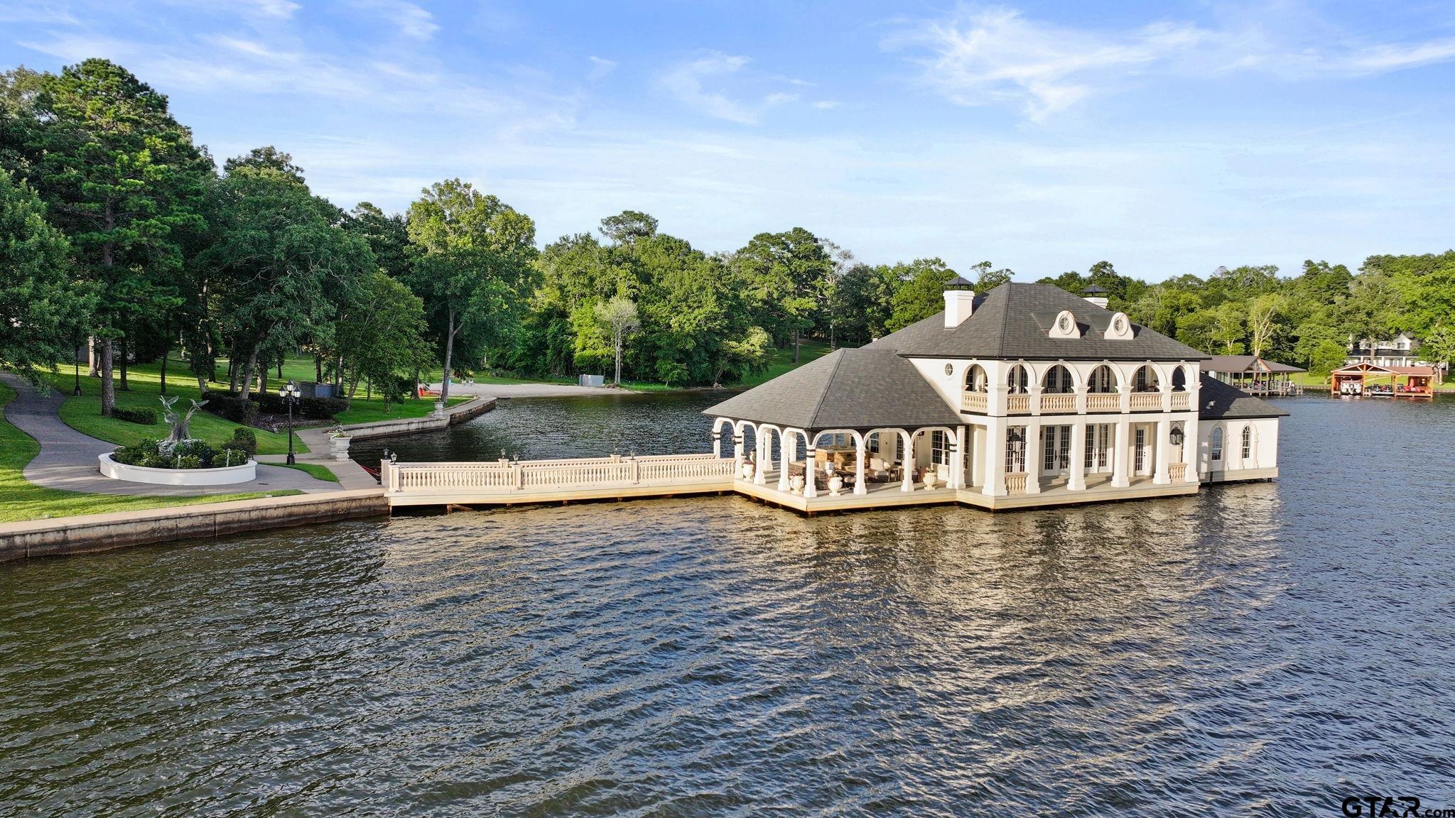 | Unrivaled Waterfront Estate on Lake Tyler – Live in the Luxurious Boathouse or Build Your Dream Home! This breathtaking 5.9-acre property offers 715 feet of prime shoreline with a concrete bulkhead and a scenic sidewalk running along the water's edge. Panoramic lake views on open water, and your own private white sand beach, the ONLY beach of its kind on Lake Tyler. The estate includes a 5,811 sq ft under roof high-end boathouse designed for luxurious living and entertaining—featuring covered porches and balcony, an outdoor spa, 3 boat garages, a floating dock, and upscale finishes throughout. Plus, enjoy a 1,760 sq ft heated and cooled 3-car garage and workshop with ADA-compliant guest quarters—totaling 7,470 sq ft under roof perfect for guests or income. The grounds are truly special: massive concrete retaining wall, hardwoods, pines, rock waterfall, life-size bronze statues in gardens, azaleas, and a grand stone gated entry with a 6 ft thick, 20 ft wide lighted driveway. No detail spared—whole-home generator, French drains, lifetime rubber roofs, Timbertec decking, gas lanterns, Lutron smart lighting, built in Sub-Zero, Thermador gas range and 2 warming drawers, Insta-hot water, ice maker, Taj Majal countertops, Quartz Workstation Sink with touch faucets plus a separate bar sink, motorized shades, smart locks, smart irrigation from lake, integrated sound system, LED 4K Projector and motorized screen in Media room (which can also be 3rd bedroom), gas stone fireplace with an electric switch starter, Toto bidets, 2 Boat-lifts and 1 Water-Craft lift, all 3 with Overhead roll up garage doors, an outdoor shower at the beach, and much more. This is more than a lake property—it’s an exquisite lifestyle on Lake Tyler unlike any other. | |