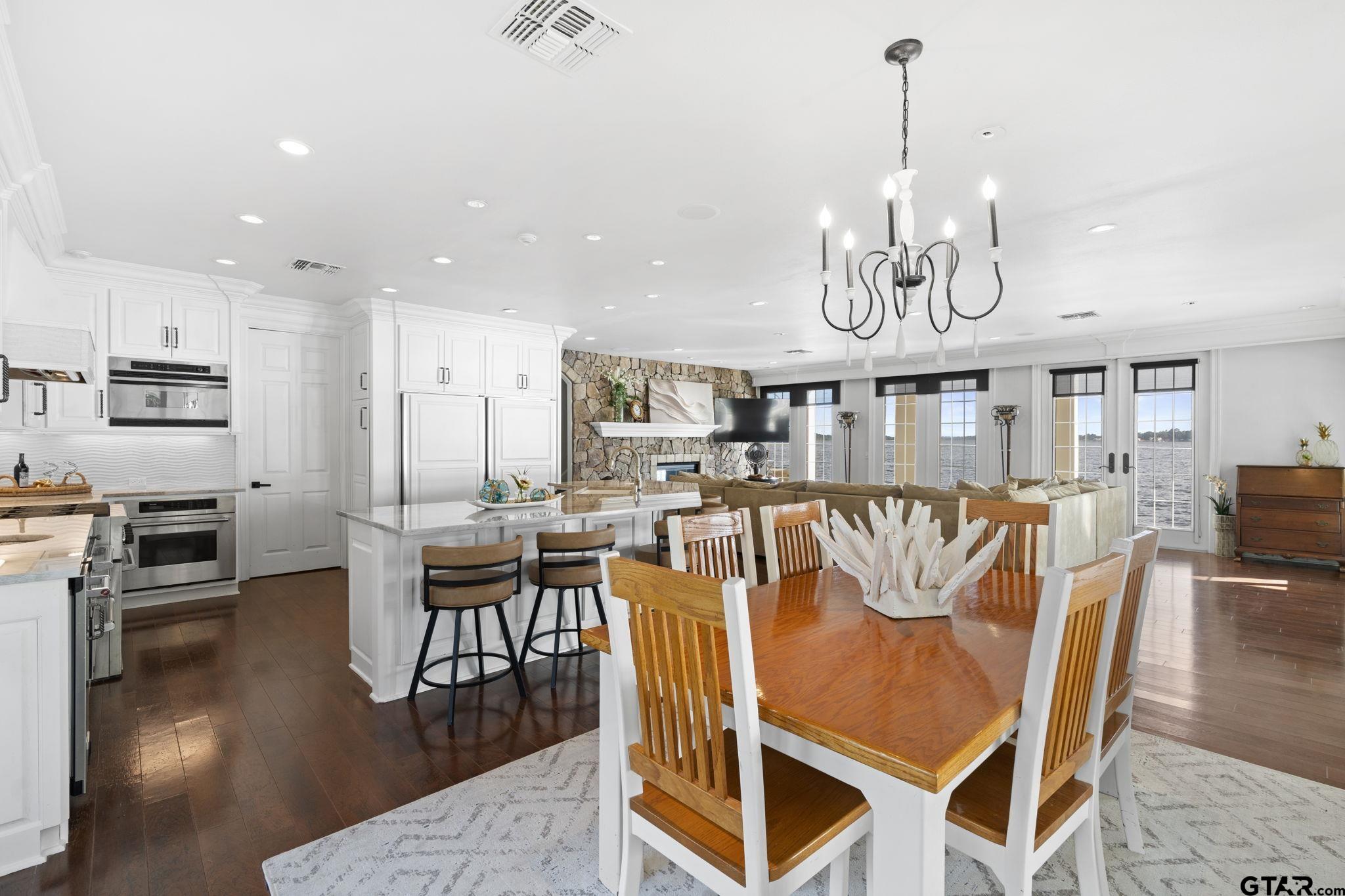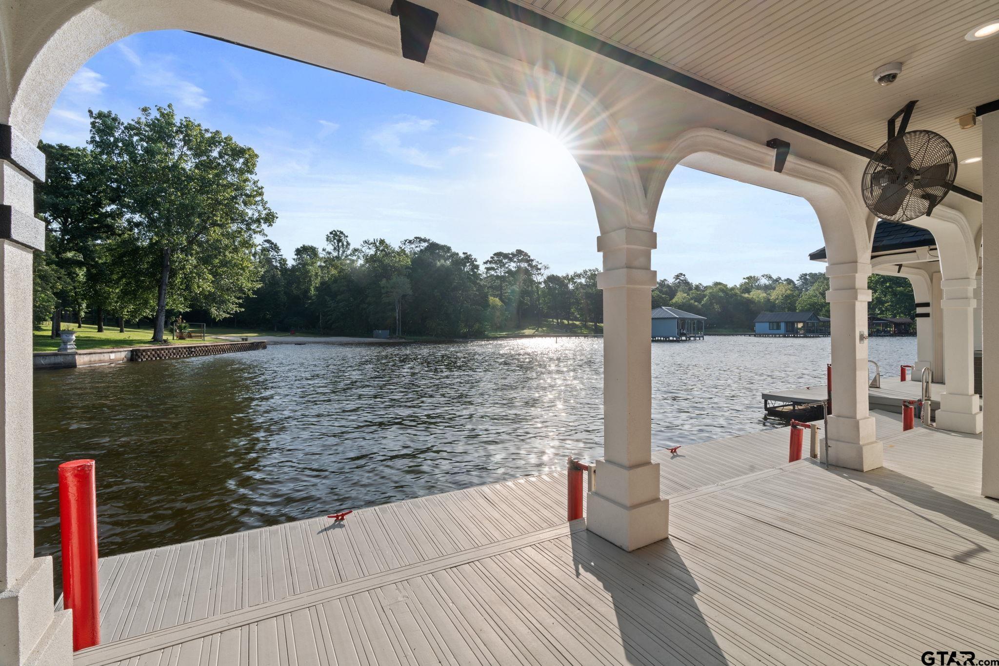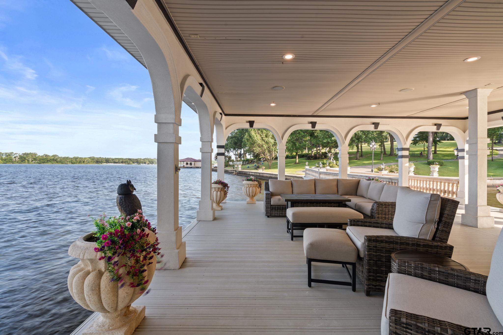 | Unrivaled Waterfront Estate on Lake Tyler – Live in the Luxurious Boathouse or Build Your Dream Home! This breathtaking 5.9-acre property offers 715 feet of prime shoreline with a concrete bulkhead and a scenic sidewalk running along the water's edge. Panoramic lake views on open water, and your own private white sand beach, the ONLY beach of its kind on Lake Tyler. The estate includes a 5,811 sq ft under roof high-end boathouse designed for luxurious living and entertaining—featuring covered porches and balcony, an outdoor spa, 3 boat garages, a floating dock, and upscale finishes throughout. Plus, enjoy a 1,760 sq ft heated and cooled 3-car garage and workshop with ADA-compliant guest quarters—totaling 7,470 sq ft under roof perfect for guests or income. The grounds are truly special: massive concrete retaining wall, hardwoods, pines, rock waterfall, life-size bronze statues in gardens, azaleas, and a grand stone gated entry with a 6 ft thick, 20 ft wide lighted driveway. No detail spared—whole-home generator, French drains, lifetime rubber roofs, Timbertec decking, gas lanterns, Lutron smart lighting, built in Sub-Zero, Thermador gas range and 2 warming drawers, Insta-hot water, ice maker, Taj Majal countertops, Quartz Workstation Sink with touch faucets plus a separate bar sink, motorized shades, smart locks, smart irrigation from lake, integrated sound system, LED 4K Projector and motorized screen in Media room (which can also be 3rd bedroom), gas stone fireplace with an electric switch starter, Toto bidets, 2 Boat-lifts and 1 Water-Craft lift, all 3 with Overhead roll up garage doors, an outdoor shower at the beach, and much more. This is more than a lake property—it’s an exquisite lifestyle on Lake Tyler unlike any other. | |
