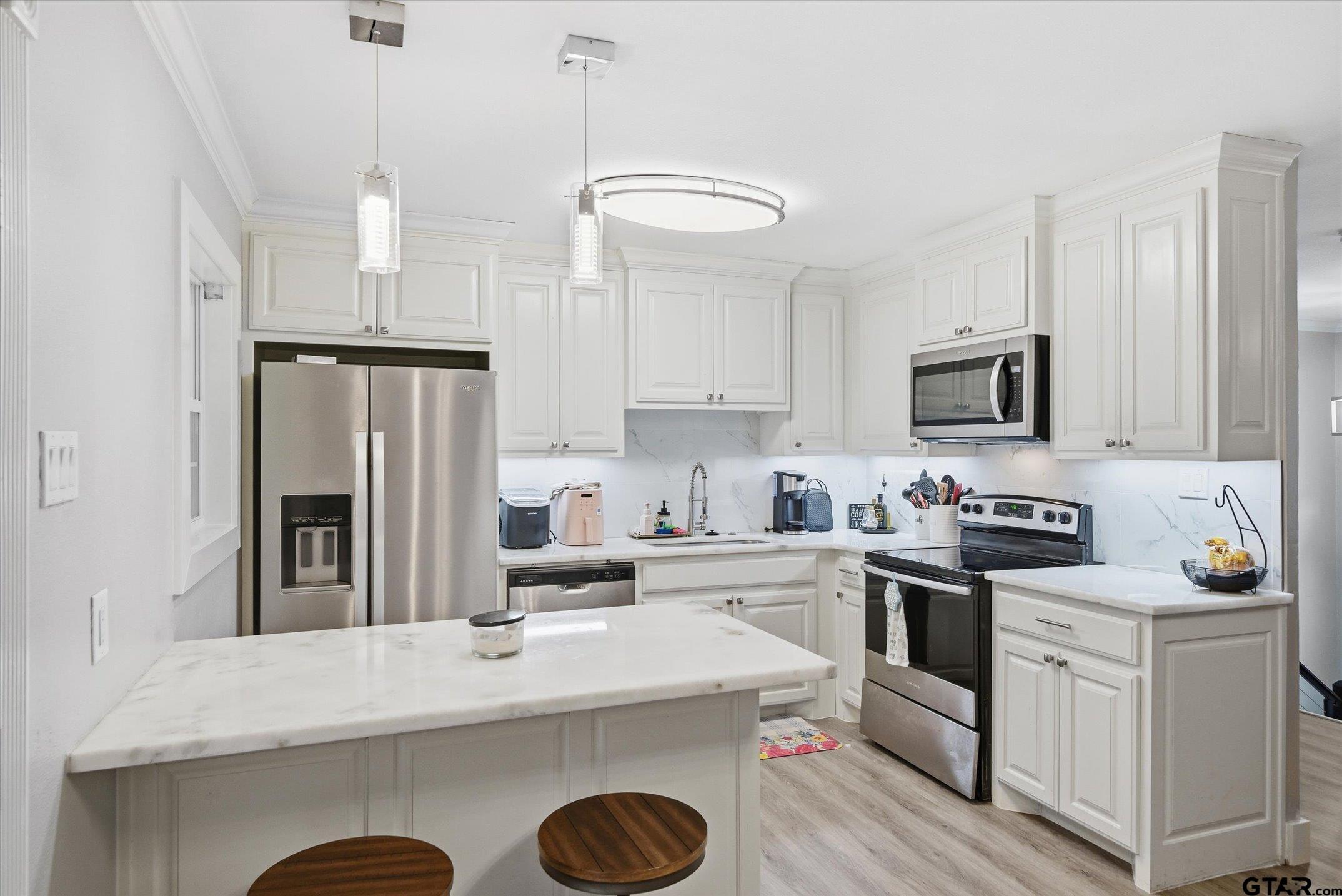 | Tastefully updated in 2023, this 4-bedroom, 3-bath split-level home is ideally located near UT Tyler, Tyler Junior College, and the medical district. Set up perfectly for student tenants, multigenerational living, home school, home office. The upper level features an open living, dining, and kitchen area with two bedrooms and a full bath. The lower level offers two additional bedrooms and two baths, plus a utility room with mini kitchenette and access to a covered walk-out porch. Enjoy a large, fenced backyard, covered porch, detached covered patio, 3-car detached carport, circular pull-through drive, and plenty of parking. This move-in-ready home combines thoughtful updates, flexible layout, and an unbeatable location. | |