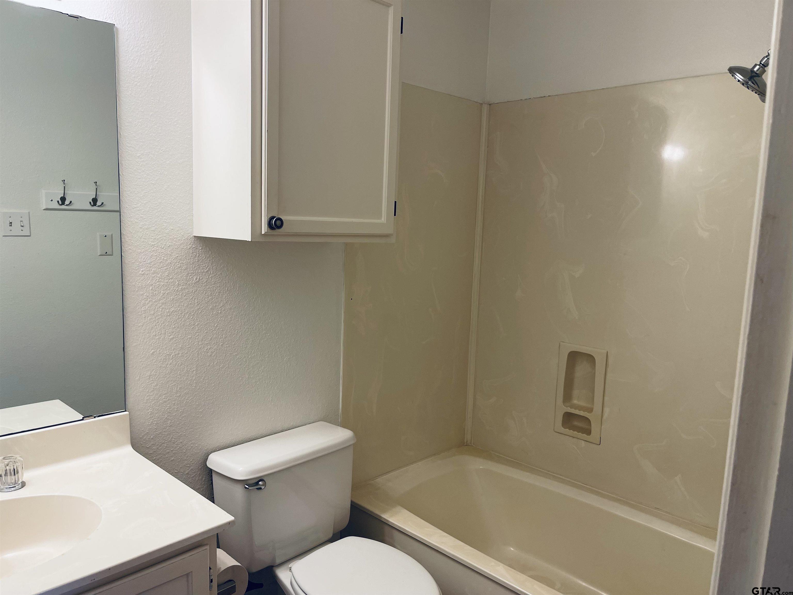 | Very charming 2 Bedroom, 2 1/2 Bath townhome in established neighborhood and so close to everything! Kitchen/Dining combo features electric range/oven, DW, MW, Refrigerator, Washer and Dryer, lots of cabinetry, granite counters, subway tile backsplash, Breakfast Bar; and opens into Family Room with WBFP. Modern colors. 1/2 Bath is downstairs. Both Bedrooms with closets are upstairs. One with ensuite Bath with shower/tub combo. There is a separate walk-in closet that can accommodate either BR. Spacious privacy fenced backyard. No Smoking! No Vaping! No Subletting. No Pets! Tyler ISD | |