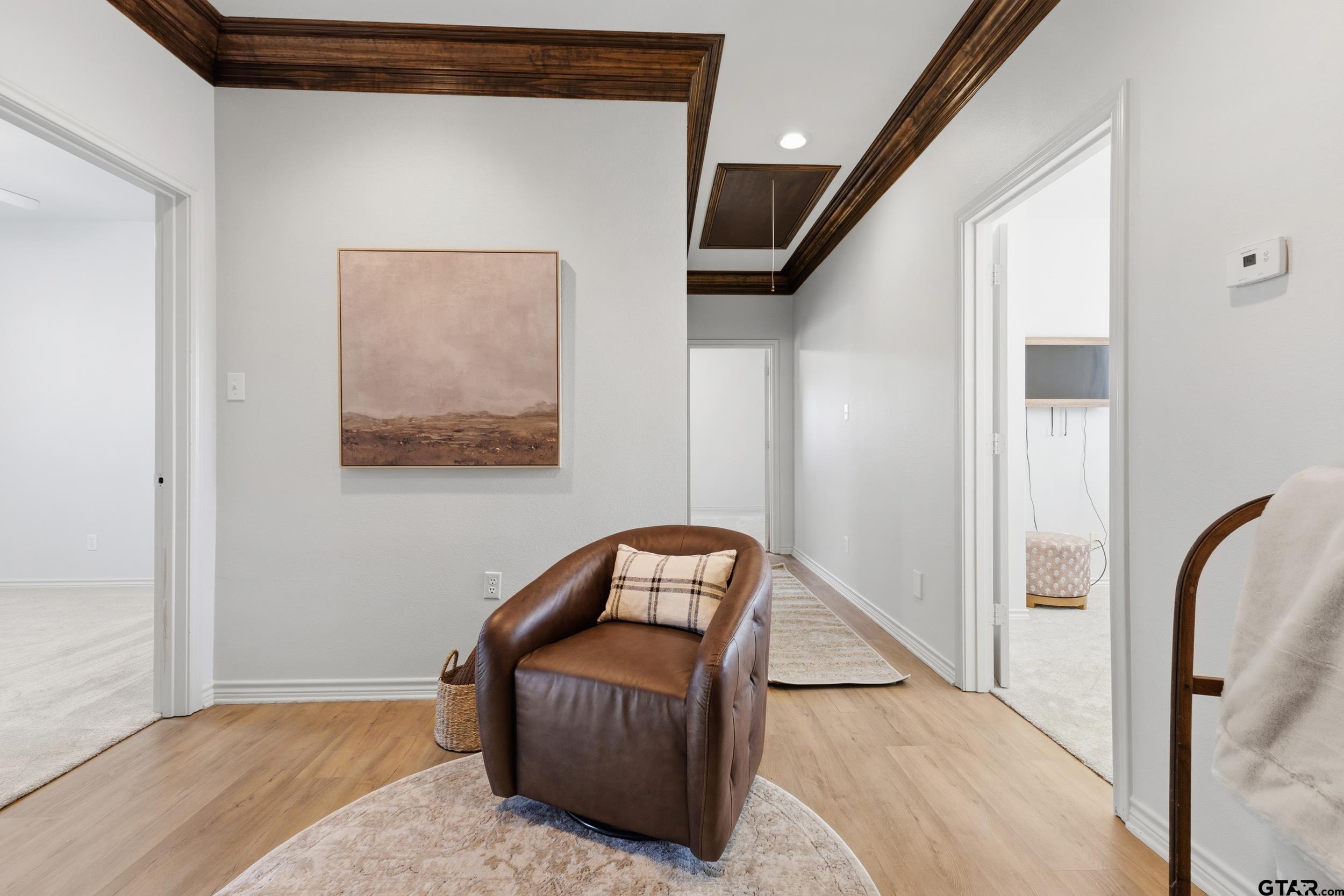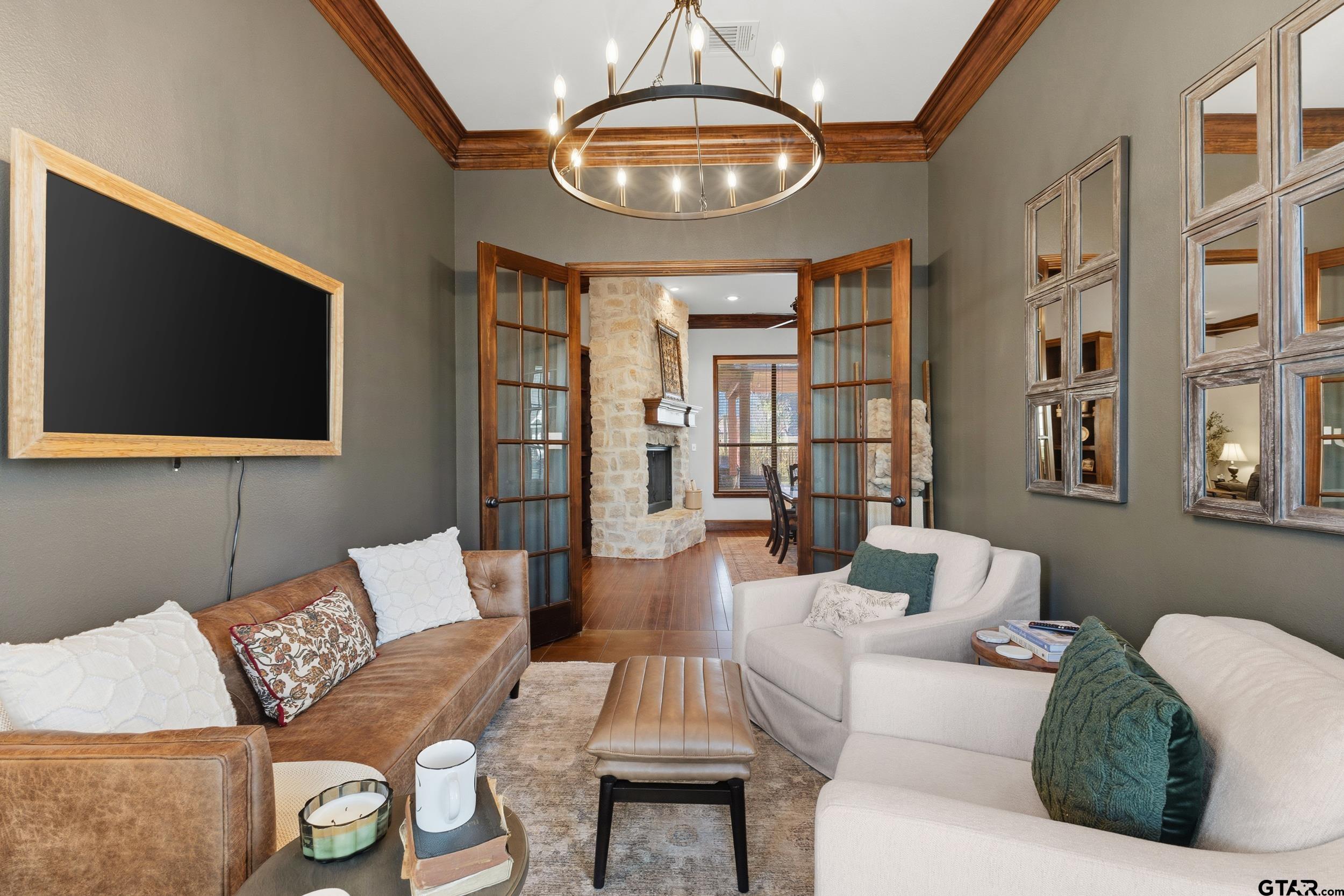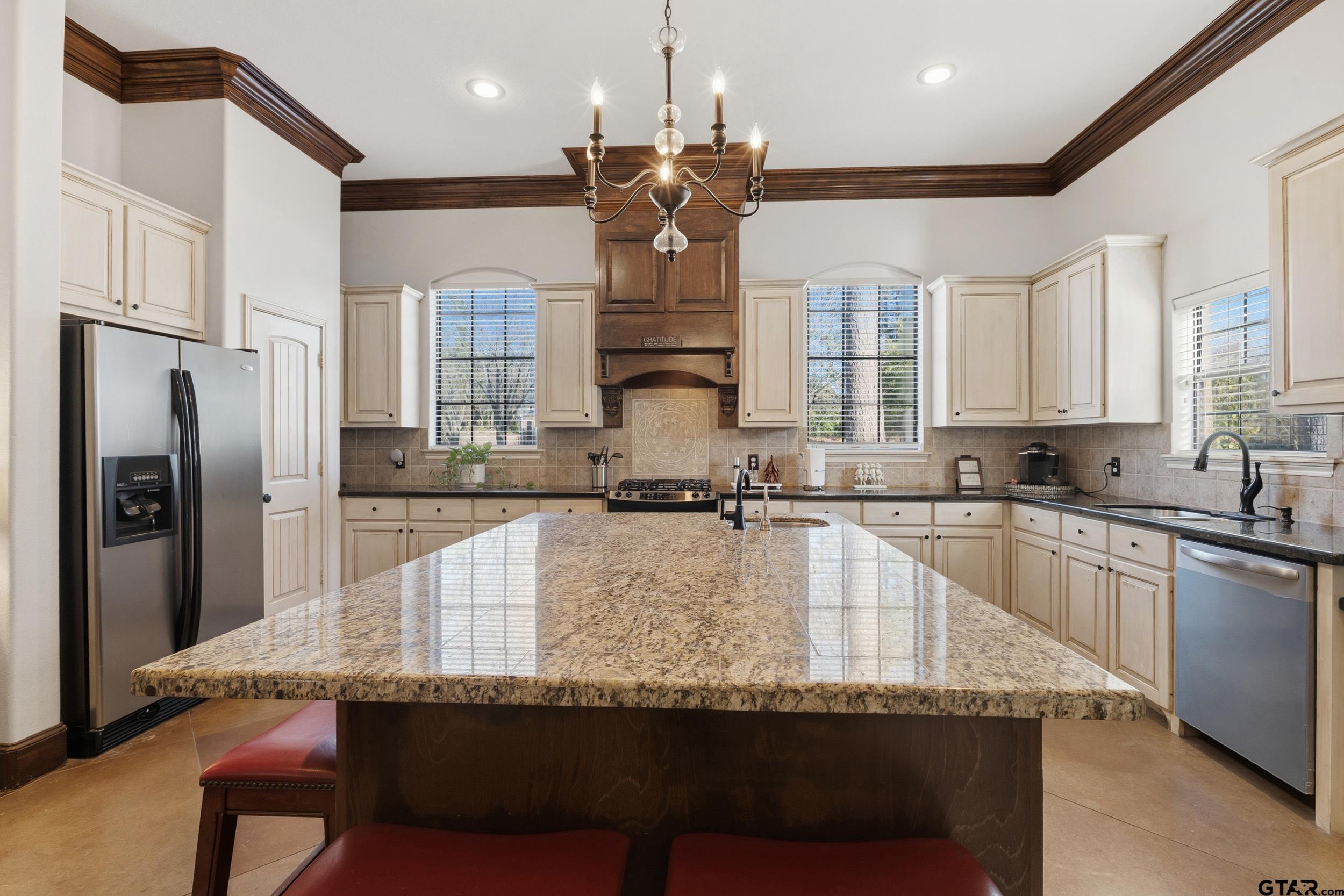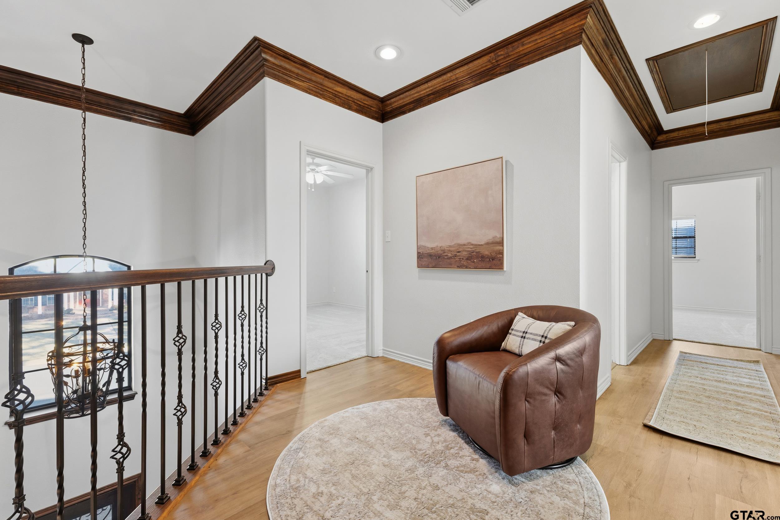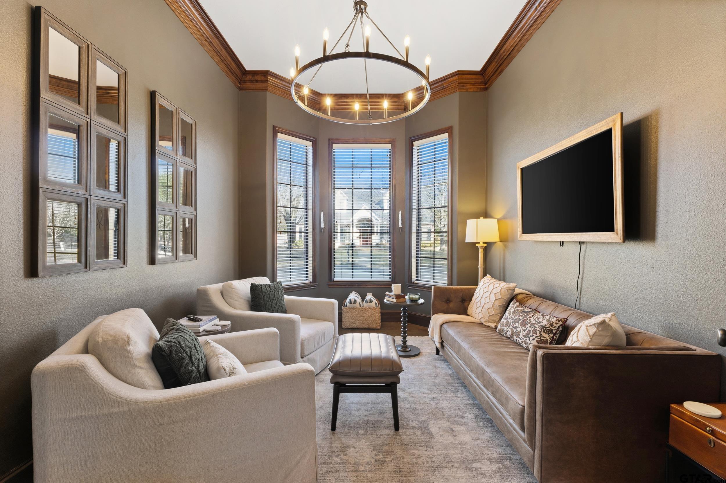 | Nestled in the exclusive Woods subdivision near UT Tyler, this stunning 4-bedroom, 2.5-bath home offers exceptional space, craftsmanship, and thoughtful design on a beautifully landscaped .303-acre lot. Step inside to soaring ceilings, elegant double- and triple-stacked walnut stained molding, and an open-concept layout designed for both everyday living and entertaining. The massive gourmet kitchen is the heart of the home, featuring an expansive island, abundant cabinetry, and extensive storage—perfect for hosting or casual gatherings. The main living area flows seamlessly to a charming downstairs reading or sitting room, ideal for a home office, library, or flex space. Upstairs, one oversized bedroom is large enough to function as a combined bedroom and second living area, game room, or retreat. Outdoors, enjoy a private backyard oasis with a sparkling pool, covered porch, and pergola—perfect for relaxing or entertaining year-round. Additional features include central vacuum, security alarm, sprinkler system, tall ceilings throughout, generous storage, and extra storage space in the garage. New HVAC units installed in February! A rare opportunity to own a beautifully detailed home in one of Tyler’s most sought-after neighborhoods—just minutes from UT Tyler, shopping, and dining. | |