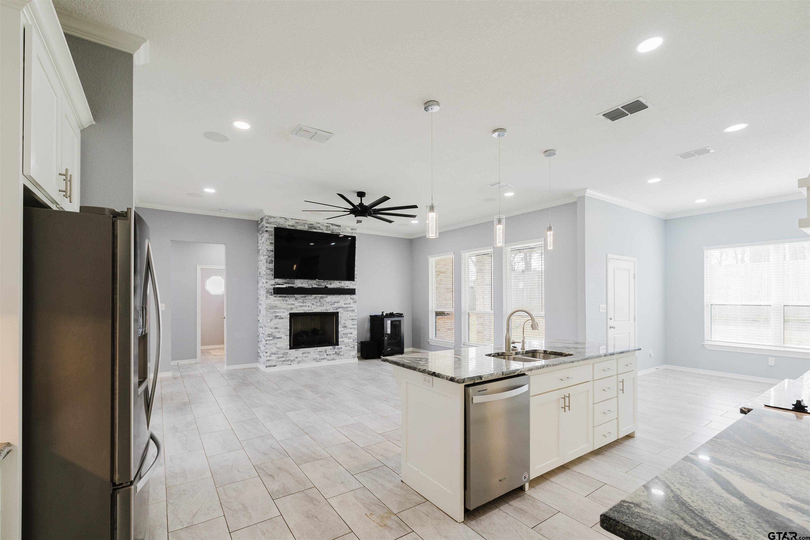 | Welcome to 12584 Berry Lane in Tyler, Texas, a beautifully designed 2,032 square foot home offering space, comfort, and timeless style. This 3 bedroom, 2 bath home with a 2 car garage features an open concept layout that feels both spacious and inviting. The home is also equipped with a reverse osmosis water filtration system. The living room centers around a cozy fireplace, perfect for quiet evenings or gathering with family and friends. Just off the living space, a formal dining area provides the ideal setting for hosting. The kitchen is thoughtfully designed with granite countertops throughout the home, stainless steel appliances, abundant cabinetry, and generous prep space, blending beauty and functionality seamlessly. The primary suite is a true retreat, complete with a vaulted boxed ceiling that adds architectural character and dimension. The ensuite bath offers a spa like experience with an oversized walk in shower, a relaxing garden tub, extensive counter space, plentiful cabinetry, and a large walk in closet. Step outside to enjoy the extended patio, ideal for entertaining, grilling, or simply unwinding at the end of the day. Located just minutes from schools, shopping, and everyday conveniences in Tyler, this home offers the perfect balance of accessibility and peaceful living. If you are searching for thoughtful design, quality finishes, and a home that truly stands out, 12584 Berry Lane is ready to welcome you. | |