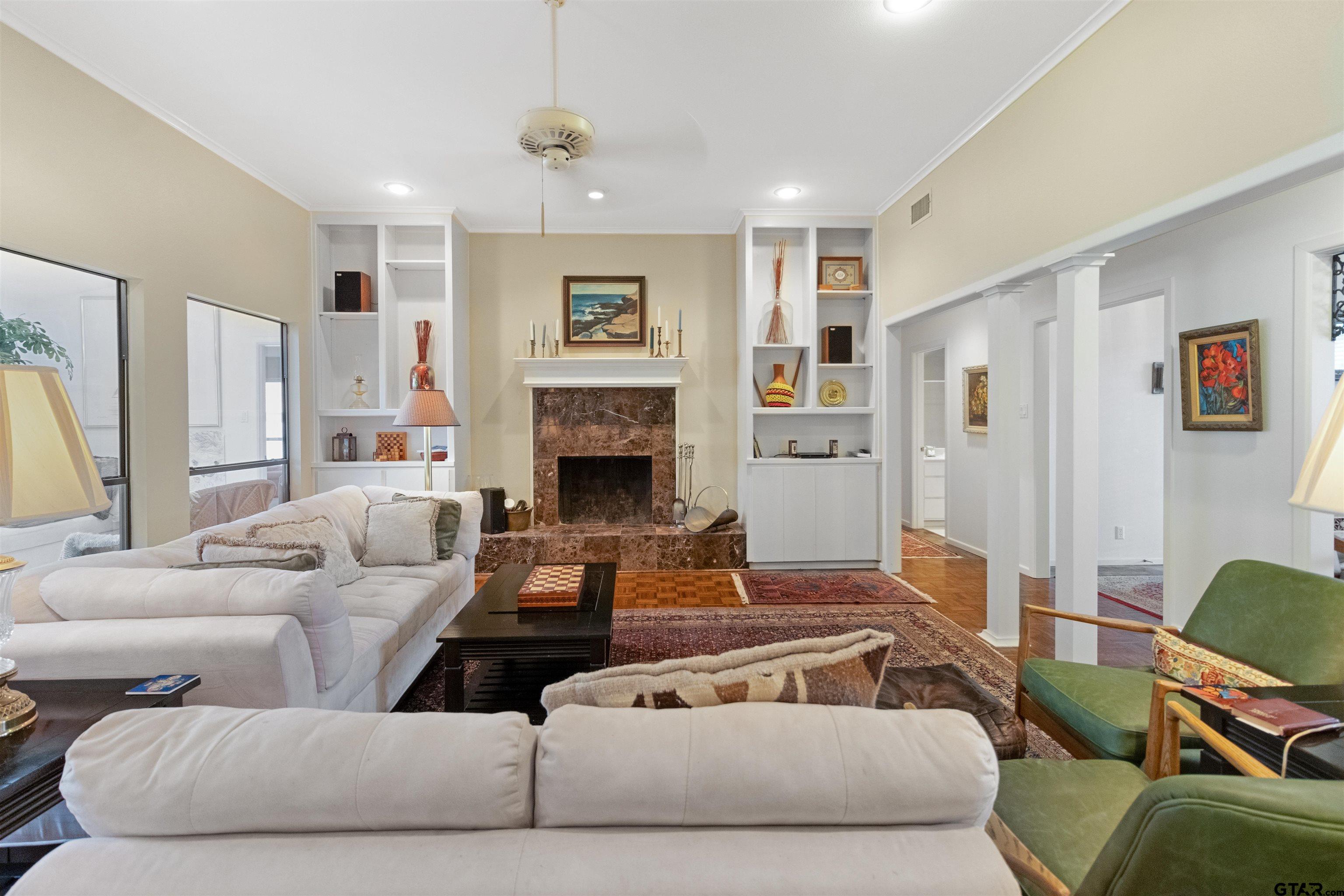 | Tucked in a prime Tyler location just minutes from everything—shopping, dining, medical, and schools—this beautifully maintained home offers the perfect blend of comfort, space, and thoughtful updates. From the moment you walk in, you’re welcomed by an inviting layout with soaring ceilings that enhance the home’s openness and natural light, creating an airy feel designed for both everyday living and effortless entertaining. The living area is anchored by a striking marble fireplace, creating a warm and elevated focal point, while the kitchen features stainless steel appliances and updated fixtures that make the space both functional and stylish. Just off the main living areas, a dedicated office provides the ideal work-from-home setup or flex space to fit your lifestyle. Natural light pours into the heated and cooled sunroom, where dual skylights and peaceful backyard views create the perfect setting to relax, unwind, or host guests year-round. Thoughtfully designed with accessibility in mind, the home was custom-built to accommodate wheelchairs with wheelchair-friendly features that enhance ease of movement without compromising style or comfort. The spacious primary suite offers a true retreat with dual vanities and a comfortable, refreshed feel, while recent updates throughout the home—including a newer roof, skylights, gutters, HVAC system, and interior improvements—provide added peace of mind. Additional features include washer and dryer connections for everyday convenience, an attached 2-car garage with a dedicated workshop space ideal for hobbies or extra storage, gas connections available for added flexibility, and a current survey on file for buyer convenience. Homes that offer this level of location, space, and livability don’t come around often—schedule your private showing today and see it for yourself! | |